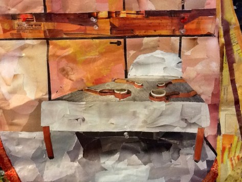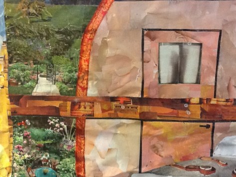 Whatever the case, I do suffer with heart-racing fear and sweats and tremors that make it difficult even to take a clear photo of the collage after working on it but whether it is PTSD, I care not.  All I care about is 1) communicating the experience, or at least what the rooms look like, and 2) purging myself of the residual fear.