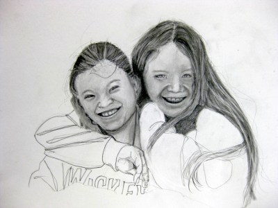 Actually, these lovely young women are my nieces, my brothers’ daughters, and I scarcely do them justice here. But rather than their appearances singly, it is the wonderful and loving relationship that I aimed to show more than anything else. Their mutual devotion is so very clear, the younger Adriane on the right and her older sister Claire on the left. I think the photo that this drawing was taken from is surely one of the most delightful I have seen, at least in terms of any recent photo of my extended family.