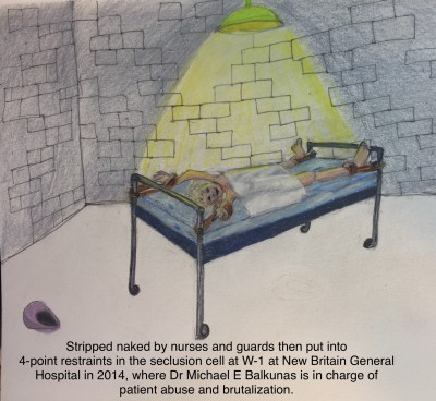 and he was chief of the W-1 unit of adult psychiatry at HOCC aka New Britain General Hospital in central connecticut in 2014, when I was hospitalized there for approximately a month. During that month he and his staff repeatedly brutalized me, including having guards strip me naked and restrain me, they laughed even as I said that they were enjoying the rape, spread-eagling my limbs into the restraint cuffs without even trying to cover me. This happened multiple times but when I informed the “doctor” what they had done, he hotly denied it, and called me a liar. But I was not and am not a liar and all I can say is, he was fucking the wrong person, because I hope to make his life the hell that he made mine… and I intend to do so by telling the truth, as loud and often as I need to. Because the truth not only will set me free, it just might one day teach monsters like Balkunas a badly needed lesson.