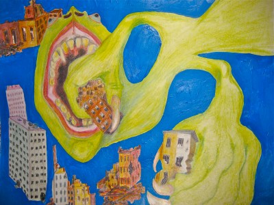 This jarred me out of my complacency. I grew irritated. Why were they making me wait? I had been there hours already and had not come in drunk or on drugs or anything like it. I had been quiet, submissive, and they just ignored me. Well, I dunno what happened next precisely, but I exploded (but in some sense in a controlled fashion, because I only got down off the gurney once, in order to use the restroom…) Some cropped-haired woman with an official look and a clipboard came by and I started rationally to ask her why I had not been seen yet, and she began an answer. Unfortunately I just barreled on about how I had been waiting hours and was not drunk and not high and, and, and…And well, it snowballed from there because of course nobody at the ER is professionally trained or for that matter paid well enough to care to learn or know how to calm an agitated person down without brutalizing them….This forever surprises me, since surely they must watch TV where such situations are frequently featured.