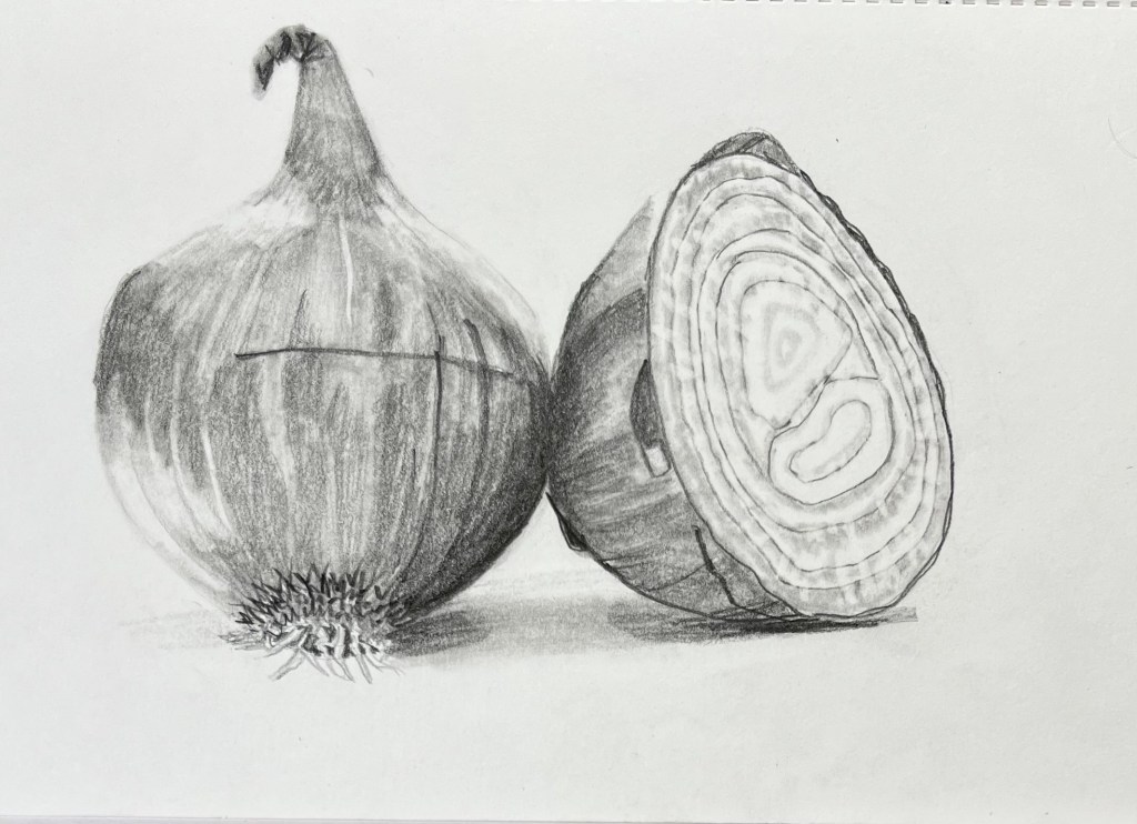The three pencil drawings were done in France, the one of my hand was drawn in Rouen when I stayed with Geneviève for 2 weeks, and the other two were made after two different excursions with Geneviève, the first to the Aitre of Saint Maclou, loosely you could say Saint Maclou’s boneyard, but it went back to the Bubonic plague and others.