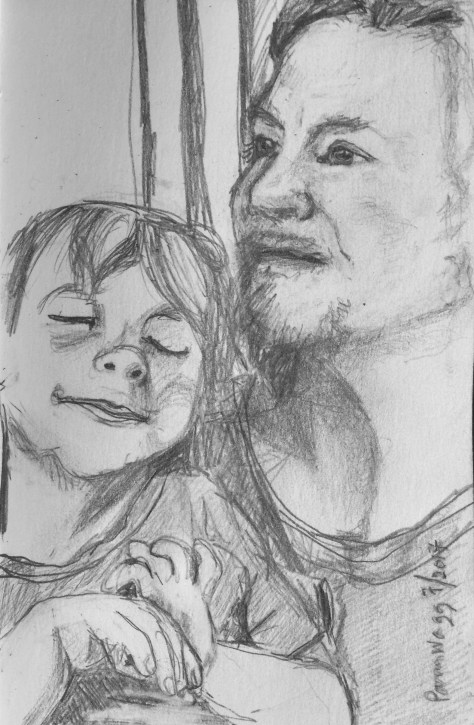 I left my fingers holding this uncropped so you could get an idea of just how small the portrait really is. Watercolors and caran d’ache luminance pencils.