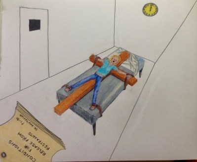 Worst of all, using restraints doesn’t work to make either the patient calmer and safer or the unit a calmer safer environment to work in for staff. In truth, things only go from bad to worse once you restrain an unruly patient…Violence only begets more violence…Moreover, when I was another hospital, I was told by one of their mental health workers that she had wanted to experience the process of being four-pointed so she could identify with patients. She was told no, because as the aide informed me, hospital administrators feared it would be too traumatizing.