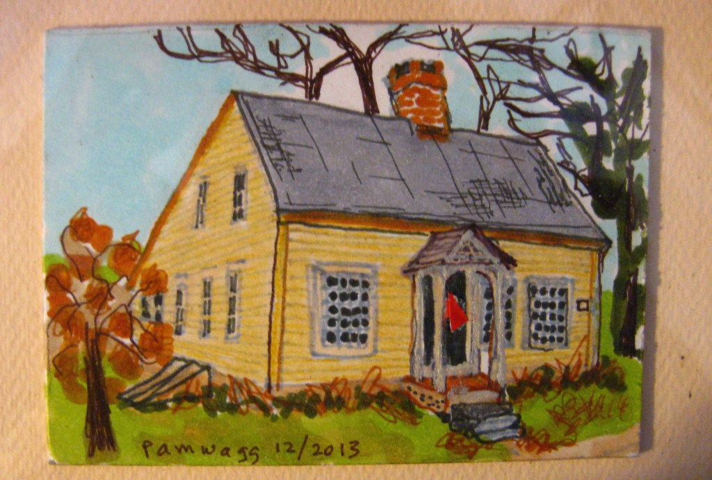 First house I ever drew, and its in a large size, all done with colored pencil, but there’s a big mistake in it. Can you find it?Second house I drew, at 9″ by 12″its about a third of the size of the first picture. But I did not make the same mistake twice!A house in Tuscany that I fell in love with photos of…Avoided mistakes made in first. This is a huge colored pencil drawing at 36″ by 20″ if i recall correctly.Photo of a friends house, done in a small size and given as giftDone in teensy 2.5″ BY 3.5″ sizeSaltbox in Wethersfield, CT without the added barn or additionsFarmhouse in VT painted in acrylics, 2/5″ by 3/5″