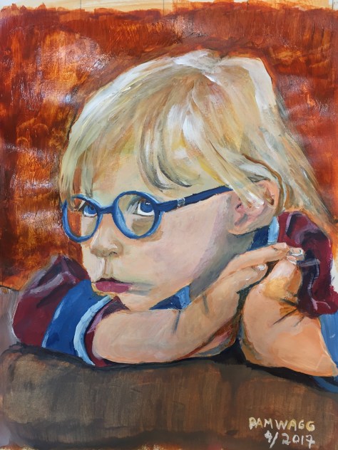 This is the finished portrait STUDY of my friend Mott’s grandson Dylan (the final portrait will be in oils but this one is a study done in my note book in acrylics, with the background still a bit wet):