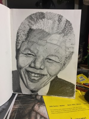 i started this portrait, derived from photographs seen in a National Geographic magazine lying around on Unit D, with the detested Crayola pencils that had to be a requisite 4 inches long or shorter…but eventually i was permitted to use ( and try to repair the portraits) with my Caran D’ache pencils, though it is very hard to try to layer anything over crayolas, especially on paper that is too thin to accept multiple layers…