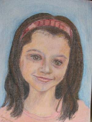 Actually, these lovely young women are my nieces, my brothers’ daughters, and I scarcely do them justice here. But rather than their appearances singly, it is the wonderful and loving relationship that I aimed to show more than anything else. Their mutual devotion is so very clear, the younger Adriane on the right and her older sister Claire on the left. I think the photo that this drawing was taken from is surely one of the most delightful I have seen, at least in terms of any recent photo of my extended family.