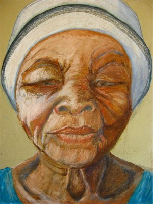 First, before I start my post today, I wanted to share my newest artwork, which is a colored pencil “painting” of a woman who lives in my building, whom I will call Rose. She did not ask me to paint her; she was simply someone who sits quietly for many hours in the community room, and so was a good subject for a portrait, and a photo. I also happen to find her a very agreeable person, one of the nicer ones here (most are gossips and backbiters, or if not most, then the most vociferous and visible of the residents). I think she will be quite pleased with how it turned out, so long as she does not expect anything but a portrait that is faithful to life, rather than an idealized one. I believe, however, that Rose is very down to earth and knows what she looks like, and will appreciate what I have painted.