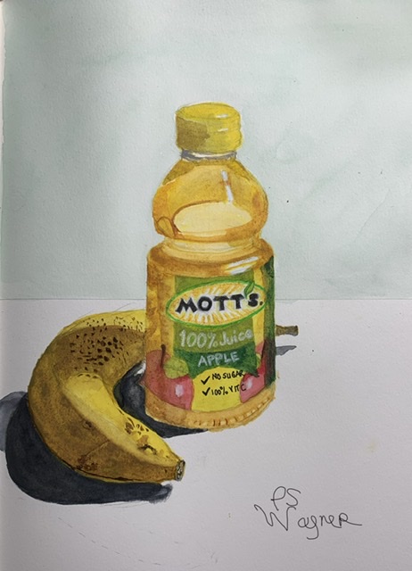 I have lost the photo I took as a reference photo, probably in a hurried effort to give myself more space, so alas, you cannot see what I was looking at. I call it Breakfast Tray With Meds, but I may change it just to Breakfast Tray because it seems everyone now takes some medication with their morning meal, yeah, even young people! Anyhow, as you can see, I’m rather enjoying drawing from this overhead perspective. And black and white is a challenge. Since all who know me know I love a challenge, expect to see more of these! (Maybe)