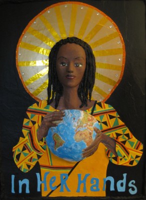 This piece and many others will be on exhibit at the Wethersfield, Connecticut public library from May 1- June 30, 2012. Another new small sculpture below will be in the display case, along with The African Queen of Paranoia, which may be seen if you do a search for it on this blog site or go to my photobucket artwork site, and small jewelry or pill boxes I made with reproductions of my artwork on the tops.